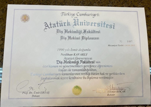 - Atatürk üniversitesi 2012-2013 yılı Diş Hekimliği Fakülte Birinciliği